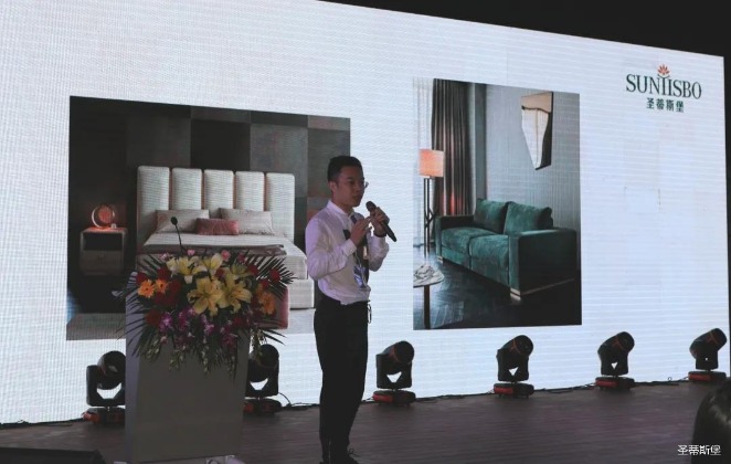 华灯璀璨的开场仪式,点燃了现场如火如荼的气氛。leyu.乐鱼集团集团营销总经理陈玉伟先生对晚会进行了主题发言,他对2020年的营销工作进行了总结,并着重从营销工作部署、重点项目开展、产品整合、拎包帮扶、渠道运营和移动+定制整装优势等方面对2021年的营销工作做了全面的统筹规划。同时,他还讲解了“美国梦凯莎床垫”新品的产品工艺、市场优势、产品定位,使经销商对我们的新产品拥有更深入的认识和了解。